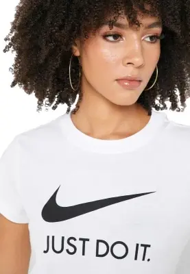 Универсальная футболка на каждый день Nike Sportwear JDI для девушек с активным образом жизни. Современные материалы дарят комфорт и ощущение легкости в течение всего дня. Фирменный дизайн футболки легко узнаваем и остается актуальным каждый сезон. Белый цвет в сочетании с графикой «Just Do It» создает Ваш собственный спортивный стиль. Футболка подойдет как для занятий спортом, так и повседневного использования. Материал джерси на основе хлопка приятно прилегает к телу и обладает высокой износостойкостью. Ткань не требует частого ухода, не растягивается и не скатывается со временем. Круглый вырез и плоские швы не доставляют дискомфорта во время движений и не раздражают кожу. Стандартный крой позволяет активно двигаться без дискомфорта. Оптимальная длина футболки и рукавов не дает ей задираться при движениях руками или наклонах.Особенности и преимущества: